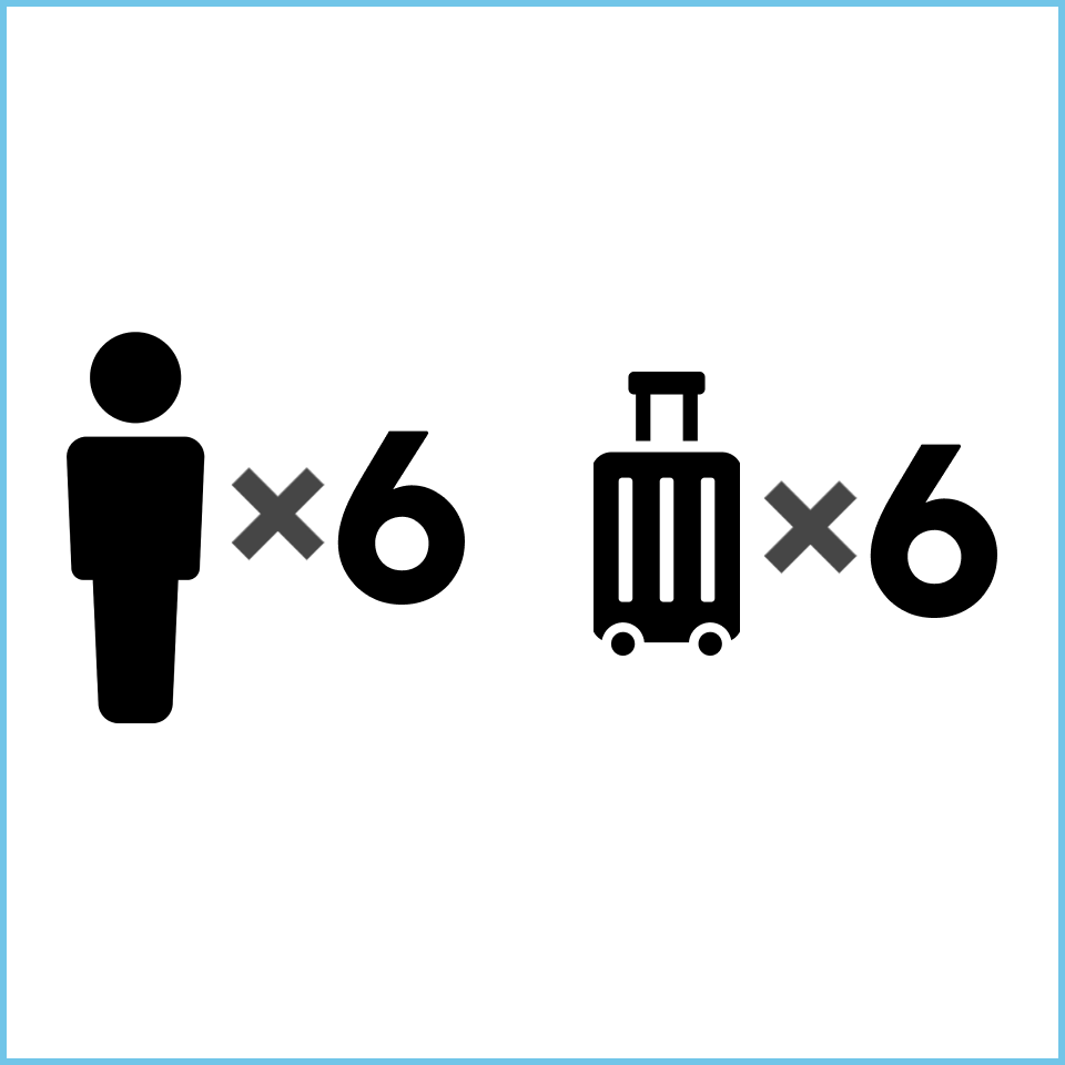 Recommended for 6 guests with 6 suitcases and 6 dive bags.
